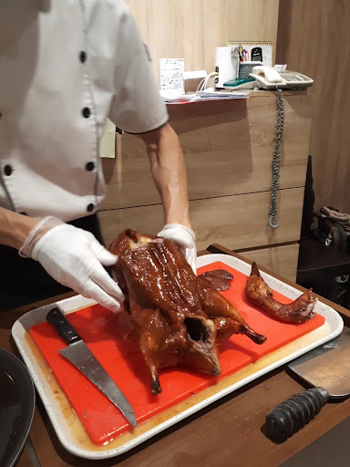 Traditional Chinese restaurant specializing in crispy roast duck in an informal space.