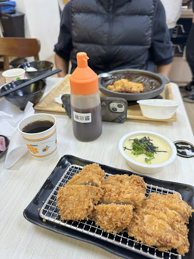 送上來時。豬排炸完直接丟進壽喜燒醬汁裡面煮 外皮已經是超級軟爛的,如果這樣還要標榜說炸豬排壽喜燒的話。請改成滷豬排。軟軟爛爛的超級噁心。而壽喜燒裡面的配菜很簡單。幾小串的金針菇、些許洋蔥、再打一顆蛋、配上煮到軟爛的炸豬排,嗯….我真的不喜歡