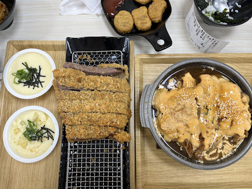 但有一說一 炸豬排的厚度和自助吧的部分算是在標準之內,白飯也吃到飽,飲料、冰淇淋、湯、小菜,還有關東煮和麻辣鴨血,在三百塊以內的價格又是在台東,我覺得還可以啦….就普通 那個滷豬排我真的覺得很難吃… 然後老闆...