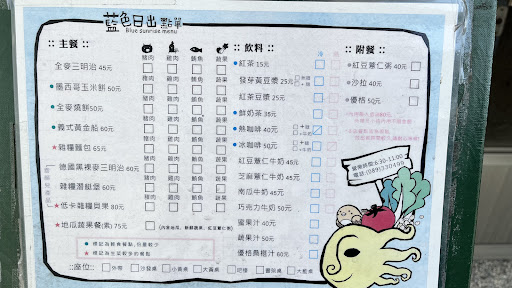 藍色日出早餐店(內用、外帶請於營業時間致電預約。)