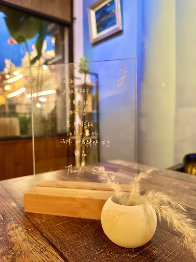 Read more每次放假回台東都訂不到的GDF,這次終於吃到了!餐廳氛圍令人放鬆,餐桌間隔很開,可以舒服的享受和家人朋友相聚的時刻。今天預訂1600+10%的無菜單料理,每一道料理都很特別,用餐期間也可以感受到主廚和服務人員的體貼與用心。 前菜1:以版畫為設計靈感的餅乾,是部令人驚艷的作品,餅乾融合風乾的櫛瓜與番茄,產生微微果香,口感像薄餅,品嚐時搭配洋蔥及鮪魚等調配成的醬汁,味蕾彷彿沐浴在春日暖陽般清新,為視覺與味覺的雙重享受。 前菜2:成功旗魚和洋蔥搭配土雞蛋製成的餅乾底座,頂部由魚子醬點綴提味,入口後有清脆的口感,海洋鮮甜的滋味充滿整個口腔,剛好中和生魚片的油脂,是道香氣柔和的春季料理。 溫沙拉:裝在透明玻璃罐裡面的煙燻澎湖小卷溫沙拉,蓋子一開即可聞到香氣撲鼻的煙燻味,特殊的調味開啟味蕾的渴望,鮮彈小卷由主廚處理過,肉質軟嫩,口感細緻,不需要自己挑小卷內殼,搭配季節時蔬,吃起來溫潤而不失清爽。額外提及時蔬當中藏了幾塊茄子,不知道是不小心還是蓄意,目前吃過的無菜單料理店,主廚似乎都想挑戰害怕忌口食物口感與味道的客人,製作了一道吃不出那個食物味道卻又創意十足的料理,而卻每次都能成功擊倒客人心中那道恐懼之牆並征服我們的味蕾。 麵包:微酥表皮與膨鬆柔軟的麵包體,搭配豐腴起司塊內裡,沾上特製的滑順蛋黃奶油,可以嚐到若有似無的酸甜味,卻也保有一絲果香芬芳,口感和諧順口,不會有起司塊跟麵包分開的感覺,與其他家的橄欖油麵包沾醬比起來,更能感受到主廚的用心良苦,雖然很大一塊,但完全不會有空虛感。 湯品:低溫烘烤的番茄濃湯,此道沒仔細聽到製作過程,品嚐起來質地豐厚,香醇濃郁,裡面沒有額外可供嚼食的料,但天然香氣在口中四溢開來,足矣。 燉飯:絲瓜蛤蜊干貝燉飯,焦糖色脆皮的干貝鮮嫩飽滿,膨起的蛤蜊也鮮味十足,柔嫩溫潤的絲瓜烤至微焦後香氣迸發,火候掌握得宜之下,口中的彈牙滋味令人上癮。燉飯屬於偏濕一點點那種,吃起來還是有米心質感,細膩綿密鹹香交錯,不過個人比較偏好乾一點的,單純看燉飯米粒的部分,目前心中第一仍屬高雄chef's...