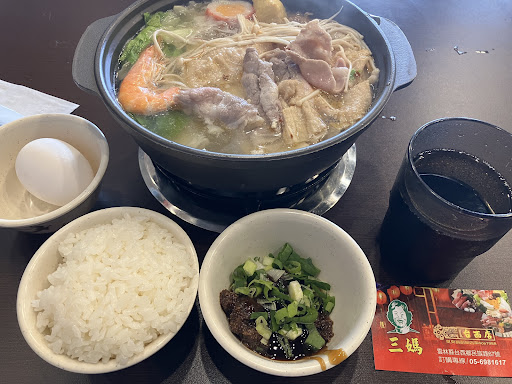 多年來第一次在火鍋店吃到煮的飯有放油,米粒油亮鮮香加上我比較喜歡吃的微半熟口感(我喜歡吃西班牙海鮮飯裡那種半熟的口感,但是西班牙的會直接吃起來像不熟,這家的則是剛好熟然後粒粒晶瑩又鬆散不黏在一起,應該是我以前看冷知識影片說加油的效果) 其他火鍋店都直接水加米,有些都黏在一起,或者雖然鬆散,但是吃起來是完全熟的感覺,這家的則是粒粒分明Q彈又不過熟完全熟,我覺得肯定是要搭配火鍋湯汁故意半熟的,不然普通全熟白飯一泡湯汁就軟爛,這家則是泡湯後維持鬆散Q彈的樣子又能吸飽湯汁。 然後作為招牌的大腸煮起來很Q彈,我後悔沒有叫先到的家人幫我多點一份大腸,只多點兩份臭豆腐而已,飲料有健康的純氣泡飲料,加上肥仔快樂水等。 按照以前都開車去麥寮吃什浬跟築間店幾乎都花三、四百塊起跳加上汽油錢來說,我本地人偶爾嘴饞了想吃外食,直接在台西吃會比較划算。 且可能是家鄉的效應,感覺台西的三媽比其他地方的三媽乾淨衛生,連碗筷拿起來都是溫暖的,應該是高科技洗碗機高效高溫殺菌洗碗及烘乾,碗碟乾淨沒有水漬,不像其他火鍋店可能沒用洗碗機洗且自然...