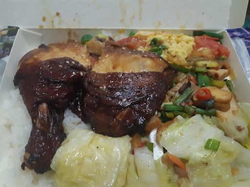 服務很好,每天飯點都大排長龍。 吃過雞排95雞腿95五花90雞柳90,最後還是覺得五花最好吃(數字是便當價格) 雞排雞腿都只有表面(皮)有味道,肉沒有入味(沒有醃過的感覺),有刷調料的皮很好吃。 雞柳有烤焦(焦黑),肉感覺像是切小塊的無皮雞排,尚可。 烤五花買很多次了,吃不膩,非常有滋味且好吃。 湯跟飲料真的都不怕人裝,每次都滿滿的很多。 便當附菜也每次都很充足,大部分時候也都很好吃(現在雞蛋很貴居然還有番茄炒雞蛋,雞蛋還很大塊)、也有遇過苦瓜、四季豆(或是豌豆,雖然不吃) 炒高麗菜...