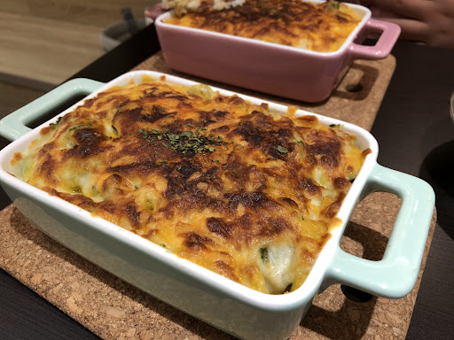 內人點的白醬海鮮燉飯也是令筆者讚嘆不已,除了同樣有色澤飽滿及焦香十足的焗烤層外,裡頭還塞滿了吸飽白醬香氣的燉飯,從細節就能徹底看出老闆到底有多用心,對食材的要求非常講究,蛤蜊又大又鮮,蝦子也同樣鮮美十足,而且熟度更是恰到好處,因著老闆的用心與堅持,讓筆者深深感到這一趟大老遠跑來中壢真的非常值得。