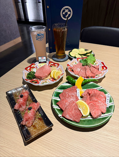 Read more三個人點了一份單人套餐跟單點幾份肉品, 開頭先來胡麻生菜沙拉,裡面的豆腐口感綿密蠻好吃的,需要提一下XD 接著每種牛肉陸續上桌由店員服務烤: 先來的是鹽蔥牛舌,看起來好像烤的有點熟,但沒想到一入口並沒有太熟的乾癟感,處理過的鹽蔥只有帶出淡淡且不嗆的洋蔥味很好的結合了牛舌的香氣(不搶味),很值得點來淺嚐。 接著是連續的和牛不同的部位(真的記不得名稱了),不管是油花相對較多的牛肋還是口感較多且名字特別的辣椒牛,其實都蠻入口就化開的,馬上就都是牛油香而且不須要什麼咀嚼。 中間穿插店員推薦的花枝,不是一般較Q的口感,而是微Q微脆的口感,很好咬但又有一點點的口感,也是推推。 裡面的肉最讓我印象深刻的就是大家熟悉的菲力還有老饕上蓋,咬下都都非常的噴,整個香味填滿了嘴巴,很好吃! 後面有喝到單人餐的牛肉的湯品,感覺裡面有加了什麼蔬果類東西(不確定),有一個淡淡的很特別的香氣,還可以,但相較肉品較普通一點。 美中不足的地方是有的肉感覺不知道是不是火太大,稍微表面看起來比較帶點焦,但吃起來是不受影響。 店員非常貼心的在注意客人,一看到我們快偷吃完蒜片,立馬就補,而且在點餐的時候,因為和牛菜單有分較多油花、均勻有油有瘦、較少油花有口感...