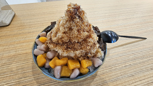 料的部分,地瓜圓和芋圓還有湯圓真的是好吃到爆,煮的恰到好處,整體口感很一緻的Q香糯,中間不會像有些店還硬硬的沒煮熟這樣;軟花生雖然有些稍微硬,不過花生本來就是這樣的東西,吃起來很像牛奶花生那樣的味道跟口感,配豆花也很優秀;他們自製的黑糖粉粿算是偏軟很好入口的那種,對於吃過這麼多粉粿的我來說算是蠻喜歡的,重點黑糖的香氣很足,黑糖用量應該沒在馬虎;至於紅豆綠豆這些豆類都滿好吃的(不過我還是挺我最愛的圓類😂)