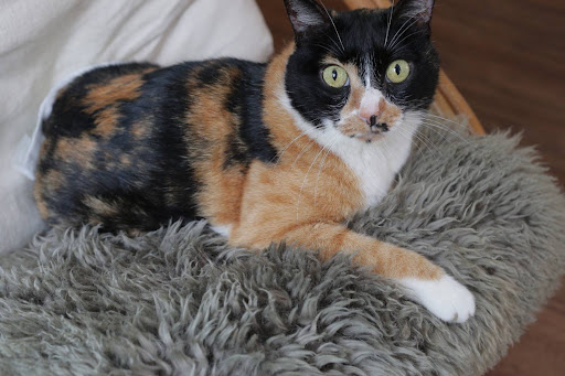 店貓叫蘇若,是三花貓,很乖巧,都沒聽到在叫,但可惜癱瘓行動不便,因此只能躲在被窩裡讓大家摸摸