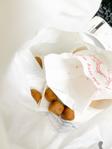 Read more不知道餐點發生什麼事情,送來芋球全撒出來,有一顆還被壓扁,本來覺得應該只是不小心滾落吧,想說算了吃一顆看看,直接嘴裡長一顆水泡,實在很怕掉過地上之類的,顏色也比較暗沈,最後怕有什麼問題只好都丟掉。