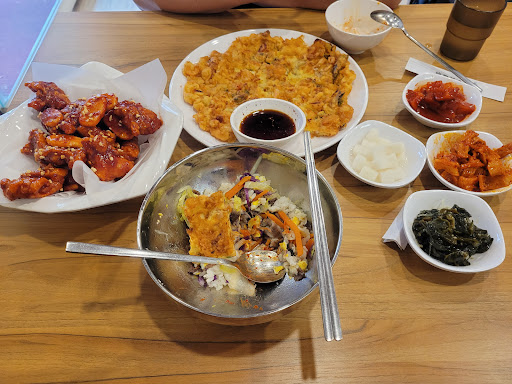 Read more很久沒有吃到這麼美味的韓式料理了, 老闆是韓國人,所有料理都非常用心, 雖然我們才兩個人可是一不小心就點了五道菜, 而且還吃到一粒米不剩, 不是份量小噢!是我真的是個大胃王, 一餐七個便當那種😂😂 小菜有三種,今天是泡菜,甜不辣(像韓式魚板那種),還有一道我沒有吃過的美乃滋玉米, 美乃滋玉米真的好好吃,小菜都可以再續三次, 先上來的是辣炒豬五花,份量超級足夠, 單吃,配飯,包生菜都超級美味, 味道比較重一點但是一點都不膩口, 海鮮豆腐鍋非常道地,海鮮完全不老, 配上有點微涼的夜晚真的很暖胃, 蔬菜石鍋拌飯的鍋巴配上蔬菜的爽脆, 一入口就感受到店家滿滿的誠意, 醬料是另外給的,可以自己調整口味, 海鮮煎餅是我在台灣吃到最大一份的, 本身如果不沾醬可以吃得到滿滿的麵粉香, 蘸上特製煎餅醬料我會覺得有點重口味, 不過我朋友是覺得剛好, 我後來把他蘸上韓式炸雞的醬料, 甜甜鹹鹹的我真是超喜歡, 最後是韓式炸雞, 滿滿一盤即使經過濃稠的醬料扮過, 依然保持著炸雞的脆度, 我本身不愛吃年糕,可是裡面的年糕非常軟, 不會過硬,我完全不想分我朋友, 因為我是南部人口味, 因此炸雞這樣的甜度完全讓我心花怒放, 真的好好吃😋 寫那麼多狂推的話我差點以為自己是網美在業配哈哈, 但我不是,是真的好吃到我會狂回訪的! 價格也很親民,服務生態度都超好, 對面有超大停車場超方便, 環境明亮,連廁所都很乾淨, 我想說點什麼缺點,但...