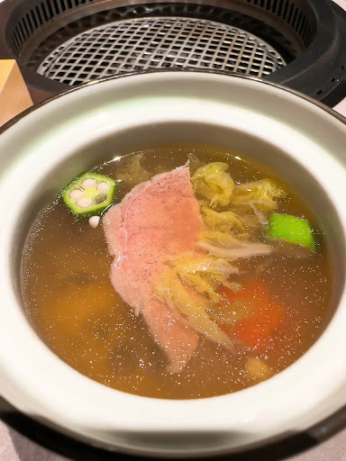 飲料我是選鮮榨果汁,不適合我的口味但女生一定愛喝不會太甜微酸有飽足感 湯是海鮮湯,以跟其他燒肉店雞湯比較是比較清淡不難喝就普普但是有料的,雞湯如果沒有煮到很好喝是會比過去的 重點來了:它越光米飯無限續我直接吃了3碗你覺得不會飽嗎?要問清楚是什麼套餐才有喔,不是每個套餐都有的 要離開之前我問了店員這樣不會虧,如果有人點一碗只吃一點點不就浪費了? 店員:虧一點點沒關係老闆娘的決定 讓我覺得非常的大器,因為來吃飯就是要吃飽更何況吃完燒肉吃不飽的感覺非常難受,所以我覺得老闆娘很懂!