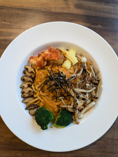 Loved it! This vegan coffeeshop, bakery, and restaurant is so cute. We ordered the kimchi pasta and wasabi pizza which were both tasty. The sparkling drink with fresh mango was very refreshing too. We also picked up several pastries - the black sesame bun was our favorite. They didn't have any cakes left when we visited in the evening, but I definitely want to try them another time! Cash only. The cashier and server/cook were both so sweet and...