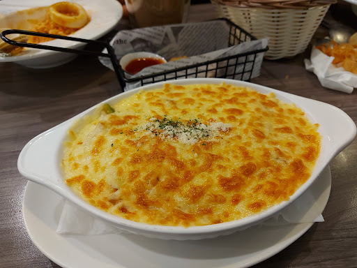 Read more*番茄蛤蜊燉飯 -有番茄的酸味,130的價格燉飯的盤子不是淺盤,蛤蜊至少有10顆的(且新鮮沒腥味)還不錯。 *奶油干貝魚片 -奶油醬應該是店家自己做的,仔細品嚐會發現奶味有點重(不愛很奶的能接受),但吃久了還蠻順口;裡面還付蛤蜊 很不錯,可惜干貝吃起來太Q沒有一絲絲之類的口感..有點可惜。 上述 店家還能幫忙➕辣、調醬汁多寡、味道。 (這服務真的很棒) 可惜…蝦子的餐點要自己撥蝦殼😓.所以沒點. 另外推推 *套餐+100 附餐 (大蒜吐司、濃湯、40元飲料、40元蛋糕任選) --大蒜麵包:兩片厚片型=1份厚片吐司量,抹醬是店家自己做的(因為奶味有偏重),烤的外酥內軟,很棒. --玉米濃湯:完全是外面沒吃過的味道,我覺得還可以😬 --蛋糕任選 很棒,我點草莓慕斯,奶味沒有很重,慕斯口感像冰淇淋。 --飲料 我選(H)奶茶:奶茶包的味道,是還不錯,但覺得更不錯的是 蠻大杯的🤣