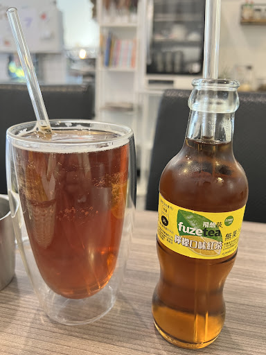 拿到熱紅茶當下,我們選擇不要再久留造成任何困擾,(而且我們用餐速度算蠻快的、也沒有久坐),至櫃檯詢問請問熱紅茶外帶杯可以給我們杯套嗎?