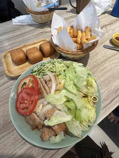 從開店到現在也三年多(好像是),這裡已經是許多媽媽早上送小孩上課後,來補充身心靈的美好早餐店! 闆娘也有兩隻嫩童,所以和附近鄰居緊密性更強 餐點: 鐵板麵不油膩、麵條不會軟爛,豬肉片是闆娘打烊後,會在店裡打豬肉,讓豬肉更有彈性,真的好吃!打破我對一般早餐店的鐵板麵既定印象 甜上心@@(有點長的名字)我都叫它銀絲卷,外酥內軟⋯小孩很愛 酥脆薯條:不死鹹,放心給小孩吃