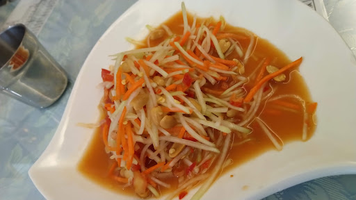 1.地點在八德,不過附近捷運施工,原本導航的路徑可能要再繞一下。周圍停車格很多,也有平面收費停車場,交通方面算方便。 2.菜單種類算多,價格也算平價。 3.月亮蝦餅可以再炸稍微脆一點會更好。 4.綠咖喱椰汁牛,這道讓我稍微失望,湯汁有點太稀,味道可能比較偏清淡,辣度可以做得再辣點,不過牛肉部分非常嫩,還算好下飯。 5.蝦醬四季豆感覺還不錯,四季豆可以再收的再乾一點點,辣度也可以再加上去。 6.椒麻雞的炸皮比較厚一點,但雞肉非常嫩,醬汁部分必要偏麻,如果再酸一點或許也不錯。 7.點心部分這次點的是摩摩渣渣,稍嫌失望。 整體來說,店內用餐環境尚可,口味比較偏清淡的泰式,因為只有一位廚師,用餐時間人多的時候可能要等待一些...