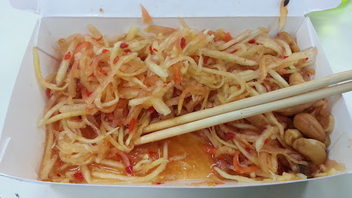 Look, I'll come here again because most of the food is decent and it's cheap and near the university, but I've never seen somebody phone in the papaya salad like this. It's literally shredded papaya--and carrots--with Taiwanese chili pepper sauce on it. Like the grocery store stuff everyone keeps in the fridge. There's a couple of cashews lurking in the corner, wondering why they were even invited. I don't come here for authentic Thai food, fine, but this is just gross...