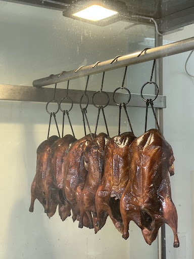 5月26日參加親人的家屬旅遊,經過此處[和平路介壽路口],此地原是“眼鏡行”,看招牌換成“烤鴨店”。能開在這大湳重要“交通道路”,絕對要有非常的“功夫”!🤔 先聽親人說:他們會買“鴨屁股”吃?(鴨皮骨肥滋滋😹有那麼好吃嗎?)二話不說,請家人去買50元鴨屁股,老闆熱情奉送共9個50元。🙏 吃下第一口我了解了!他們家的“鴨屁股”有淡淡鹹味(這烤鴨應該有醃漬過👍),一下吃了3個,剩下的隔天就自己加醬料炒來吃光光。😋 就因“鴨屁股”讓我對烤鴨好奇了……!?[請家人幫我買半隻吃看看];看起來與它家無異,一吃下去片鴨非常柔嫩[我包裹在附贈小麵餅(柔軟又有筋道),沒有加醬料,淡淡的鹹味,說不出的好吃😋] 半隻真的不夠吃,昨天6月6日又請家人買半隻,還是吃不夠,越吃越讚,停不下💯👍😉 今天我決定親自去買,看看它們怎麼處理“烤鴨”。我是中午離鋒時去店裡,還是有客人陸續上門,電話訂購也是不斷。[我的疑惑:我問老闆鴨是醃漬過對嗎?賓果😊如我所想;這就是他們的秘方吧!] ⭐️附近有間烤鴨老店(我覺得生意會影響,除非價格有競爭力,否則🤔),對面邊境烤鴨,他有‘’獨門香酥鴨‘’(這有差異性,影響可能小些!) 💯總之沒有完美的店家,能做到有部份追隨的“食客”就難得![畢竟一間店的生意:地點、食材、CP值、特殊性都很重要😉] 😋我喜歡:小麵餅包裹“片鴨”+烤鴨架的醬料、九層塔、蔥,好吃!好...