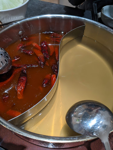 Read more11/18二訪 男友吃完第一次後念念不忘 原本以為星期五應該是平日 特地挑中午來吃比較沒人 還可以吃得到雜炊🥣~~ 殊不知店員一介紹今天有藤椒麻辣鍋時 我就知道不妙 睦月亭的假日定義是五六日‼️喔😂 原本很想點鴛鴦鍋的 但男友前天吃橘子吃壞肚子 所以我們還是只點了蔬果現熬的原味鍋 然後點了熟成背肩牛肉和嚴選海鮮 上鍋時店員請我們先品嚐一口原湯 真的是淡淡熬出來的蔬果味 很少有原湯還沒煮東西前喝起來有清甜味的 然後就幫我們下蔬菜類