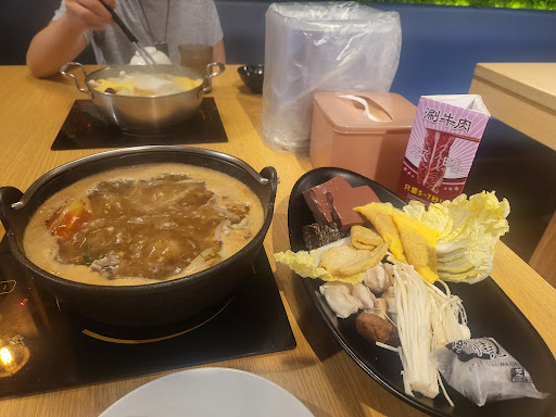 依看重順序評分: ★自助吧:4.9 全部約20出頭道食物可以選 含麵類 以自助吧來說偏少 不過火鍋料占比較低 其中有南瓜和木耳及3種菇類 它給的菜盤也不是一般看到的平盤 在視覺和裝食物的便利上有大大加分 小細節上裝白飯的碗不會像一些火鍋店比較摳門只給特小的碗 另外滷肉的料肉給的很多很大方 有些火鍋店豆皮加進去料看起來還是不多 不過白飯偏硬 ★主餐:4.5 豬肉份量有10盎司 肉質中上 鍋子有比一般店還小一點 湯頭選免費的昆布湯 淡淡的沒什麼味道 ★價格:3.7 有加一成服務費 雖然價格最低299CP值很高 但是菜單價格有明顯斷層 299元上去是459元(價格直接從五鮮級中上變成築間中下) 299只有雞跟豬兩種選擇且加價湯頭至少也要45元 ★醬料:5.0 醬料可以選擇的數量跟高級店一樣,而且有洋蔥丁,醬料碗的大小也很大方 ★飲料:4.2 有兩台熱飲機,選擇多樣 冷飲除了各式汽水的之外只有另外一台冷飲機 飲料蠻特別的,有一個是鳳梨果醋 跟築間、聚比少一兩台(想喝紅茶結果沒有) ★冰品:4.1 相對高級店用哈根達斯、明治、卡比索等知名品牌 這家店用的是一家泰國品牌 口味特殊 有椰子和荔枝(還看錯吃到榴槤🥴) 剛好避開跟其他常見品牌如草莓和巧克力的比較 不過口味只有4種 沒有提供冰沙 冰淇淋機提供哈密瓜口味,跟之前711吃到的差不多 ★裝潢:5.0 牆壁大部分使用紅磚 有些牆壁使用綠色植被覆蓋 加上上方間接採光的襯托 明顯視覺加分好看 天花板完全沒有裝潢 管線和梁柱直接露出 有裝設的使用軌道筒燈 不過上方的工業風跟下面紅磚壁搭成的風格無違和感 可以猜出當初天花板的工業裝潢是有意為之 ★廁所:4.8 無論壁磚還是地磚質感在前端班 會有錶框的照片或文件做襯飾 環境清潔、小細節貼心設計 馬桶有附衛生紙、洗手台前都有鏡子 ★服務:4.3 在有10%服務費的水平上看...