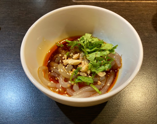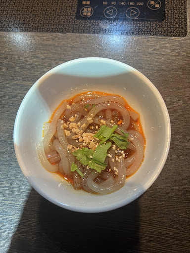 餐前會招待川味酸辣涼粉,相當好吃,就是重慶酸辣粉那種,小小一份調味得相當好吃、很開胃。櫃檯也有在賣涼粉包。 另外,餐前也會先點水(檸檬冰水)或熱茶(普洱茶)。