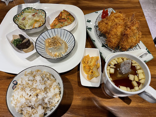 再來就是用餐餐點的感受,餐點是真的感受得到老闆娘的用心準備,但是份量真的不多,用餐到了後段店家有詢問如果沒吃飽可以再幫我加一碗飯,可是問題菜都配完了加飯配豬排嗎? 用餐後計算了一下今日餐點的CP值,四色餐盤價值算大約100元,炸豬排的價值也大約100元,然後一碗糙米飯就算30元,整個餐點讓我覺得只有230元的價值,就算加上50元的湯品也就280元的價值,我都覺得這個價錢都算高了,而且還賣到330元,所以算是個高價的店家,難怪到店時店內沒有其他客人