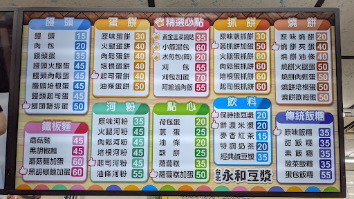Read more吃過的永和豆漿裡面算不錯吃的, 常常下班經過都會買一下! 給大家推薦幾個不錯的小東西大家參考 我的宵夜名單😬 1.鍋貼 生意很好常可以買到剛起鍋的,外酥脆、皮Q內餡豬肉韭菜超搭很好吃力推👍 2.抓餅加蛋 抓餅加蛋再加一點醬油也是絕配好吃😋 3.掛包 很有味道控肉軟Q快要入口即化也是夜間美味之一。 4.培根蛋餅 現煎外皮Q彈好吃。 5.滷肉飯 最近發現的新菜色、真的好吃宵夜時段附近吃過好吃第一名的滷肉飯推薦大家嘗試,有附蛋通常沒熟可以交代全熟真的很推好吃。 6.烤地瓜 第一次在永和豆漿吃到,很神奇的感覺想吃的也可以試試看不錯吃喔! 7.燒餅夾蛋 外皮酥脆搭上...