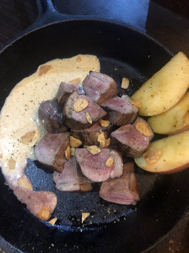 再來當然就是要吃我最愛的牛舌,我是非常喜歡吃牛舌的牛舌的部分呢評價我沒有辦法給得很高,因為牛舌其實就是要吃他的軟嫩,但是呢他在燒烤的過程當中呢?他烤的比較乾硬一點,所以呢?再吃起來的時候就會感覺少了一股軟嫩的部分吃起來比較乾,比較柴,然後也比較硬,整體而言呢?給的評價是還好。沒有到讓我非常驚艷的地步
