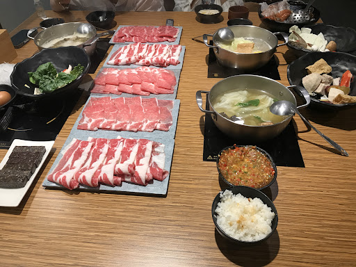 Read more週六約傍晚五點到場候位,有空位但碗盤還沒收。店員收拾的速度頗慢,只是一桌卻讓我們等了一段時間。 我們點了牛肉、豬肉、三鮮鍋,並且加送了一盤新會員的肉盤。 三鮮鍋選擇小卷、紅蝦、鮮魚。最推小卷,很甜而且大隻。紅蝦意料之外的新鮮,肉質Q彈。但是鮮魚是冷凍庫拿出來的,放到最後煮還是硬的,不太好熟,但單論口感是好的,只是會有淡水魚的土味,介意的可以點其他魚種。桌邊有放海鮮建議烹煮的時長,蠻貼心的。 豬肉的話就是中規中矩,沒有很重的豬肉味,不加醬料也很好吃 整體體驗不錯,吃得很飽。 美中不足的部分是甜點紅豆紫米湯有燒焦味,不然其實煮得不錯,紅豆跟紫米都有透。 加入會員可以用line累積點數,下次還可以換肉片或火鍋料,新會員有送肉券,撇除動作慢的...