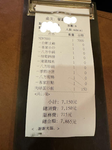 I personally feel like this place is a scam and highly do not recommend you to come Firstly, they do not allow us to order each dish one by one based on my preference, they basically force you to buy their bundle and you can’t change anything. Secondly, because we have a bigger group of people, they give a separate menu. (So basically if you have 2 people they give a menu, if you have 8 people, they give another menu. ) But the thing is the menu’s bundles’ portion is fixed. We are not even allowed to change the amount of food per dish. It’s just fixed. And when we asked the people there if we are able to finish it, they say it is okay and it is not too much. They were blind, cause there was so much food, we had 5 containers of takeaways cause there was too much food. We were a family of 8 which had 4 teenagers and 2 elderly, like how do they expect us to finish it. There was a whole duck and soup, a whole fish, half a chicken, a whole bowl of beef, a thick and big cut of pork, a whole mountain of vegetables, a whole bowl of mushroom and vegetables, a mountain of tofu. What I’m trying to say is they should not be forcing people to buy their specific bundle. Thirdly, a driver brought us around Taiwan and usually in Taiwan when I driver brings people to their restaurant, they would usually give the driver a simple meal for free. This place just charged it in our bill! Fourthly, their food was honestly not even good. The duck soup probably had oil for a car to drive a mile. There was so much oil it was disgusting. The tofu also tasted so basic, the chicken tasted basic too. It taste like any chicken I can buy at random store. Fifthly, It is totally not worth the money, it is more than double of my average spending of a meal. If I’m spending that much money, I would expect the food to be heavenly, but it is so disgusting, I couldn’t even eat until my stomach’s maximum capacity. I was just so disgusted that I could not eat anymore. Furthermore, we bought the cheapest option and the other prices are 7000, 8000, 9000 and even 12000 And plus the 7000 dollars does not include tax so aside that 7000dollars, there is a 10% tax Don’t come here I really hate it 7000 plus almost 8000 dollars out...
