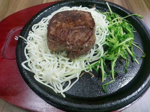 先說主食,雖然說我可能拍得單調,但是醬料是可以自己拿,所以我是打算選經典的鐵板麵加番茄醬,牛排則是玫瑰鹽。 菲力五分熟真的很推,肉質嫩 很好切,刀子輕戳一下,汁是真的會直接流出來的那種,超愛吃牛排的我一直很想再來一兩塊🤤 鐵板麵加番茄醬拌勻後,也不會輸外面其他家店,而且看其他客人評論的,照片都拍起來很少,其實不會,很剛好,麵也有嚼勁,軟硬適中👌