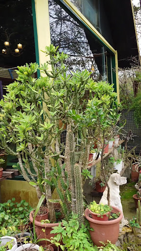 咖啡館下方有一個不小的停車空間,走上樓梯後,印入眼簾的是滿滿綠色植栽的小花園,用餐環境雖沒有太多裝潢,但簡單舒適