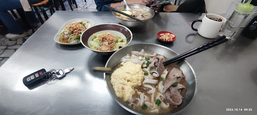 Read more當地有名的米干店,湯米甘、碗豆粉、跟小菜的豆皮都很推薦。是會想再回訪的店家。 湯米干的湯頭濃郁但又不會膩,喝起來很舒服。 碗豆粉滑滑潤潤的,搭配酸酸鹹鹹的醬汁,是少數在很熱的時候還能吃得下去的料理。 炸碗豆粉外酥內軟嫩,剛炸起來熱熱吃很好吃,放涼之後會有點出油,建議上桌之後就快快吃了。 小菜豆皮伴芝麻跟香油讓香氣提升了一個檔次,這個我也覺得很可以點。 如果要加桌上的辣子建議適量就好,雖然辣子很香,但是太多的話餐點本身的香氣都會被蓋住了。 It is a famous rice noodles restaurant and worth revisiting. I recommend the rice noodle soup, pea flour, and soy bean skin. The rice noodle soup is rich, comfortable, and not greasy. The pea flour is smooth, paired with a sour and salty sauce, and is a good dish that could be tasted in hot summer. The fried pea flour is crispy outside and tender inside. I recommend that it should be tasted quickly when it comes; otherwise, it will become greasy when it cools down. The soy bean skin goes well with sesame and fragrant oil, which can upgrade the dish to the next level. It is worth ordering. The spicy sauce on the table should be served in moderation. While the sauce is fragrant, the original flavor could be covered if too much...