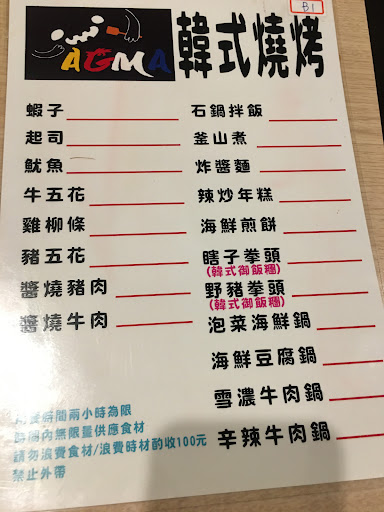 菜單還算多樣,左邊是燒烤用,右邊是廚房直接出餐,廚房出的餐,一份有點大,不知道是否可以直接跟老闆說,少量一點。