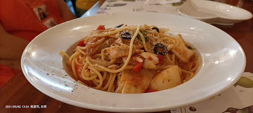 Read more番茄海鮮義大利麵份量多到一個有些嚇人的地步,味道還可以,算是有入味,干貝一顆很大顆