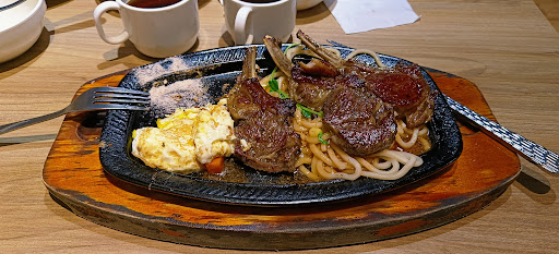 Read more以平價牛排館來說,CP值算高,而且很佩服廚師火候掌控的能力。 家人說,7分熟的特製牛排($210)剛上桌時,確實柔嫩可口;自己的羊排($350)上桌時也是酥香柔軟。雖然二者吃到後面都因為鐵板的熱度過熟了,但這是很難避免的。 丁骨豬排($310)厚度足,從頭到尾都非常柔軟多汁。 鐵盤夠熱,蛋超級好翻而且完整。麵口感偏家常白麵,但有入味,也還不錯吃。
