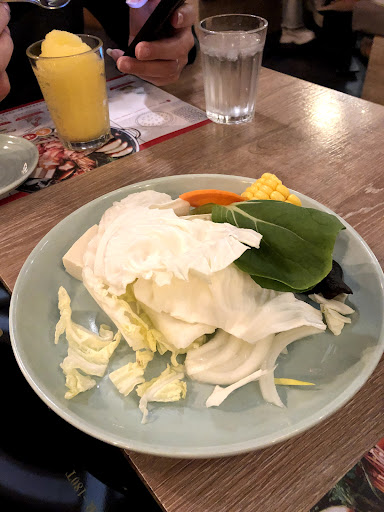 以為是搞錯了所以問服務員菜盤現在的是這樣嗎結果 服務員說是的 現在的菜盤都是這樣 可能是因為菜擺放關係所以看起來很少 .......但我之前來的時候沒有這麼少過啊 服務員說 如果不夠 等下還要菜車..... 我也不想多說什麼 服務員都說現在都這樣 還能說什麼 只是當下很生氣而已 之後上的肉 也是一陣失望 (因為餓翻了所以沒有拍照) 不管是豬肉還是牛肉 都薄到透光 薄到透光 涮起來一點口感都沒有了 以為剛上所以之後就不會那麼薄了 結果......之後點的 薄度一樣 所以 就一次各點8盤 服務員端上桌時也沒有一次上齊全 牛肉上4盤 豬肉上6盤 我不懂為什麼不一次上齊 之後菜車來後 我還要一直回答還要多少盤肉還沒上 對 她來三次我回答三次 牛肉上的最慢最晚 不知道是因為他們推出和牛的關係 所以牛肉盤就上的很慢 上的牛肉 當然也很薄啦
