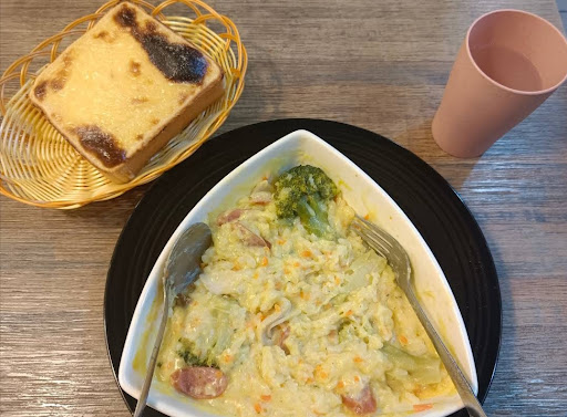 Read more超級平價的義式餐廳點了個安全牌的白醬焗烤飯,蠻對我的胃口,這是我吃過料蠻多的義式餐廳了吧!每個餐點「量」超足吃完很飽,很適合學生來吃CP值超高👍