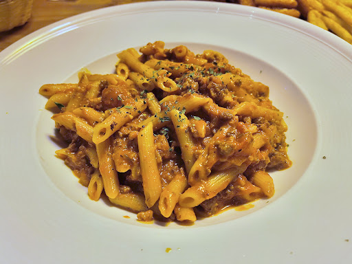 We ordered two main dishes, 2 spaghetti and portions were quite large. So I would suggest to order 1 main dish spaghetti for share and maybe a side dish. For my spaghetti, sauce was nice and creamy, but chicken and shrimps were slightly over cooked. The noodles was dante and well cooked. We also ordered buns for starter but didn’t come at all. We asked for cancellation of the buns. The waiter did help us and no extra fee was charged. Not the best place to eat and chat due to the surrounding noise. Overall a nice...