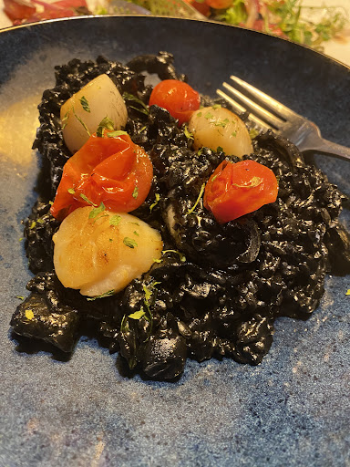 Read more中文(繁體) Nini 義式料理的調味非常符合台灣人口味,比我在西西里吃到的還要合我胃口!墨魚燉飯香濃不腥,干貝和番茄完美點綴,擺盤也美。飲料還畫了個笑臉,讓人一整晚心情都好~推薦!