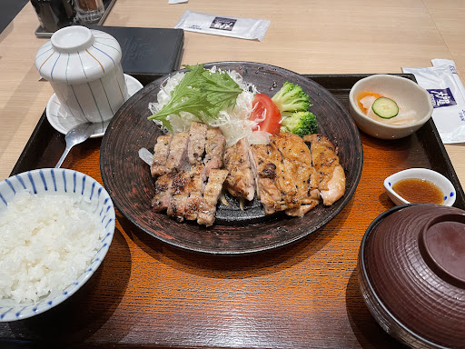 Read more好幾次都想進去消費看看 但是看到價格不便宜 而且內用還要加一成服務費 加一加快跟吃到飽價格差不多 怕吃不飽又花大錢會生氣 下午時段人比較少 好吧吃看看吧 點烤雞豬定食 茶碗蒸+40元變成干貝茶碗蒸 可以直接點餐 也可以使用每桌的平版點餐 定食可以續 高麗菜 味增湯 白飯 烤雞豬定食 吃下的第一口嚇到 好吃到早該來這裡消費才對 不沾醬搭配 白飯 感動到覺得這樣就很好的感覺 身心靈 感覺到無比的舒適 瞬間肉肉一口一口就吃光了 白飯上灑上黑芝麻鹽 哇塞嚇到 竟然可以吃到芝麻的香味 有一種高級感 白飯的等級也滿高級的口感 外面加一碗要30左右的口感 不會說免費的就隨便 高麗菜絲也滿厲害 有切細絲的也有稍微有口感的切法 一般外面的不是切太細 就是 切的粗糙 這邊是完美比例 有點像7-11小小一盒60-90左右生菜的口感 搭配的醬料吃起來酸甜酸甜 在加一點點純釀醬油 吃起來非常的順口 味增湯 湯頭溫潤 裡面的豆腐是嫩豆腐欸 完全可以感受到用心 茶喝起來一般 醃白蘿蔔 切的很薄的 但是味道十足 純粹 好吃 +40元升級干貝茶碗蒸 干貝看起來滿肥美的 但是口感一般 建議不要升級 把錢點其他的更划算 雖然這樣吃起來含服務費 快500元 但是真的好吃到忘記貴的感覺 因為自己食量比較大 白飯 高麗菜 味增湯 好像各續加 2到3份 其實還真的吃的飽 而且又不會像吃到飽 那樣吃到難過 也浪費食物 真的非常推薦 可惡說者說著又餓了 !!! 主食頂級 配菜不馬虎 建議食量大的 可以先白飯配肉肉 吃完後 再續味增湯 配白飯 變泡飯 在撒點芝麻 茶碗蒸可以配白飯 變滑蛋飯 吃不夠 加點高麗菜絲 有菜有肉又吃的飽...