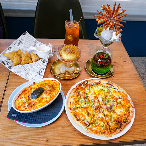 Read more環境:由一個L型的舊教堂所改建,採光明亮,位置不算擁擠,冷氣調整的溫濕度恰到好處。舒適的座椅,精緻的餐具,一進門就讓人覺得非常放鬆。 雲南牛乾巴沙拉:新鮮脆口的生菜、甜椒、番茄和乳酪塊如同兵將,上頭擺放著多種香料醃製後烘乾的雲南牛肉乾如同國王,一旁的胡麻醬猶如皇后,兩者共同帶出這份沙拉的多重風味。 綜合炸物拼盤:鱈魚塊、雞柳條、帶皮馬鈴薯條、魷魚腳和金三角(內餡為咖喱馬鈴薯),五種食材都炸的恰到好處,炸功了得,搭配三種醬汁,每一口都是不同滋味。 泰式冬蔭功義大利麵:沒有想到冬蔭功也能做義大利麵,義大利人知道會不會生氣呀?但他們生氣前我會建議他們吃看看,因為這是如此地搭配,酸辣的調味與海鮮的鮮味相呼應,麵條成了調和的媒介,相當美味。 焗烤千層米干:將用在來米製作而成的米干,搭配紹子醬(肉臊),以千層麵的作法焗烤,口感較為綿滑,焗烤的味道中混入紹子肉香和米香,中間的一大塊南瓜,為這料理增添甜味。 鮮蝦叻沙燉飯:叻沙的香氣美味貫穿整道料理,蔬菜、鮮蝦都相當鮮甜爽脆,和著絲滑香辣的燉飯,刺激著你的味蕾,一口接一口。 教堂布丁:網美必拍甜點,格子狀的糖衣罩在手工布丁上,相當吸睛,輕輕地敲碎糖衣,搭著滑嫰微扎實的布丁,每一口甜味都不相同。 蘇麻雙峰聖杯冰淇淋:雪花狀的鬆餅、茶凍、鮮奶油、脆笛酥、蘇子和芝麻回味的冰淇淋,一出餐就引人注目,不同的食材互相搭配組合,每一口都有著驚喜,好吃又好玩的首選甜點。