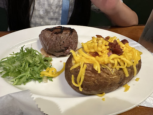 This was the first time I hadn’t had to wait to get into Texas Roadhouse so of course it was an excellent experience. We got the chicken fingers, sirloin steak, and a burger. All of them were delicious and cooked perfectly. I just wish I was hungrier and had finished it all. The baked potato had cheese bacon sour cream and butter on it and was a flavor explosion with each bite. The burger had bbq pork on it and a really nice sauce. You know Texas is a big brand so the experience and food are going to be exactly...