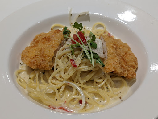 Read more2025/4/25 17:30 1人 清炒培根義大利麵 套餐,可能是因為清炒,沒有遇到其他人說面跟醬分離的問題,麵吸醬汁吸的蠻鹹的w 而且份量蠻大的 套餐沙拉、麵包、濃湯就正常,沒有遇到有人說的冷掉的問題 不過平價的店好像本來就有點運氣問題 可能我很怕燙?(😂 飲料焙香烏青鮮奶 茶香味不算濃 不過蠻順的w 總共261 算是很平價了吧 餐點口味算不上驚艷 不過這個價格要要求多少呢XD 就只是想吃飽就好 如果有到附近逛可以再來 另外想講一下看到有人說機器人送餐不方便 要自己拿 我也不太喜歡 但是平價餐廳很多都用機器人 這是節省成本的一部分吧 也沒收服務費 真想要好服務就去人均幾千的餐廳吧 而且剛好前面另一桌兩大兩小 看起來小朋友對機器人送餐蠻有興趣的 所以好不好還是看人啦w 扣分點:有一隻果蠅在旁邊飛了差不多三分鐘 雖然這種開放式的區域也可能是其他餐廳吸引過來的 桌麵地面沒看到油漬 垃圾 算乾淨 1隻果蠅對我來說不是大問題 但如果很在意的人要斟酌一下 個人主觀評分4.3 優點:便宜 份量不錯 算乾淨 飲料蠻好喝的 缺點:有一隻果蠅...