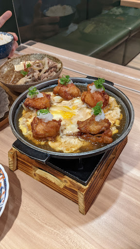 稍微小失望的是炸雞鍋丼 相比華麗的外貌 口味上比較普通一點 雖然些許的蘿蔔泥和蔥末有點綴的效果 不過因為泡在醬汁中 容易軟化 而且外面的蛋和醬汁稍嫌普通了點 和價格上有些落差