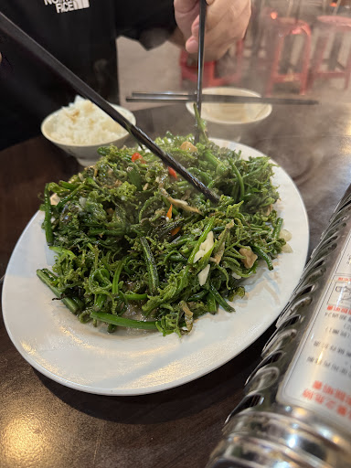我第一次來,有人招呼入座且協助點餐,覺得還不錯。點了牛筋麵跟牛肉炒麵。店員好意詢問有需要點個青菜嗎?我問有什麼菜,回覆:菠菜、高麗菜。$80。我繼續問有空心菜嗎?她說空心菜的話幫您做空心菜炒牛肉$200我心想也行,反正有空心菜。