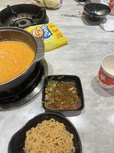 Read more這家六扇門火鍋的生意超級好 我們平日晚上六點到時 裡面已經坐滿 只能在門口狹小的候位區等待 等待的時候就可以先畫菜單點菜了 只是要注意自動門很敏感 腳不小心開了點 門就會叮咚的打開 然後服務生就會抬頭看一下..... 入座後 先到最後方靠近廚房的櫃檯結帳買單 完成後就可以開始享用自助吧了 把檯除了供應冰品 飲料之外 另外還有白飯可以加豬油可以無限量供應 同時這間店還有準備王子麵跟冬粉 據說頭份另外一家供應的麵體是不一樣的 只是最近在整修 下次再去看看 火鍋上桌後是滿滿的一鍋 菜跟肉份量都算多 湯頭也算不錯 自助吧檯有高湯可以自己追加 同事吃南瓜鍋 最後再用南瓜湯煮冬粉 整個冬粉吸附著南瓜濃湯 看起來真的很好吃 飲料的部分有很多種 碳酸飲料外 還有果汁及茶類 熱飲的部分則有咖啡 搭配著爆米花還蠻不錯的 食材這麼豐富 難怪生意一直這麼好 我們要離開時 外面更多等待的人 而且都是家庭成員 停車的話對面建國路上都有停車格 還算方便...