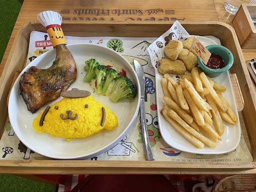 Read more因為朋友說這裡蠻好玩,特別訂位帶孩子來玩,結果卻得到非常生氣的體驗,我們點了兩個主餐,布丁狗雞腿飯和美樂蒂南蠻雞飯,還有一個Kitty舒芙蕾,跟服務生說甜點餐後上,點餐時服務員特別強調舒芙蕾現點現做,必須要提前30分鐘告知,所以我吃主餐到一半就立刻跟一個男性服務員說了,一小時後我的桌面被清空,餐具盒也被收走我覺得不太對勁,去問服務員她們還在那邊教育我說我沒有30分鐘前告知,我口氣也不是很好了,我說我還知道我是跟誰說的,然後一群服務員就聚在吧台那邊也不知道在講壞話還是幹嘛,沒有任何人要跟我說明,現在是要等半小時還是怎樣,大概十分鐘後突然丟了一盤舒芙蕾上桌,竟然是冷的,很明顯不是現做的,我等了一小時自己追蹤然後等到一盤冷掉的甜點,最重要的是服務人員一臉就是跟它們沒關係,沒有人要理我的嘴臉,我花了一千四百多,還收了一成服務費,然後這種服務態度比自助式的咖啡店還差吧!進去也是入座後要自己去要兒童餐具,也都沒有人主動理你,然後我的水杯幾乎喝完了,居然是離場前才終於有人來加水(感謝唯一有主動服務的短髮的小姐),整個很傻眼,結帳時那個小姐就是我跟她反映餐點未上問題的,她也沒有任何的解釋或是慰問剛剛的狀況,服務態度真的很不OK,再來就是餐點真的非常不好吃,雖然早有心理準備這種店就不是主打餐點美味的,但是也真的太難吃了吧!布丁狗雞腿飯那個薑黃飯黏糊糊的,還沒味道,我和小孩都完全嚥不下去,美樂蒂南蠻雞飯的飯也讓我家不挑食的男人吃不下去,除了主菜以外飯幾乎是沒有動,再加上冷掉的舒芙蕾我們也是硬吞的,只能說這家店真的很囂張,我第一次遇到這種品質還那麼貴的餐廳,本來還想去101快閃店體驗的,但看來不需要花錢找罪受了,兩顆星是給她的硬體設施還算不錯,也有控管人數不會...