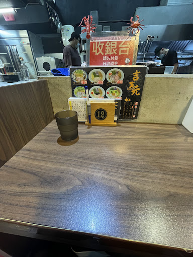 吉天元就是這樣的模式,這邊看得到一些台灣名店的痕跡。 吉天元的位置在萬年大樓的B1的角落位置,店內空間廚房跟用餐區目視大概約1:1,廚房區真的蠻大的。 座位有靠近廚房的吧台區,還有遠一點的桌區。