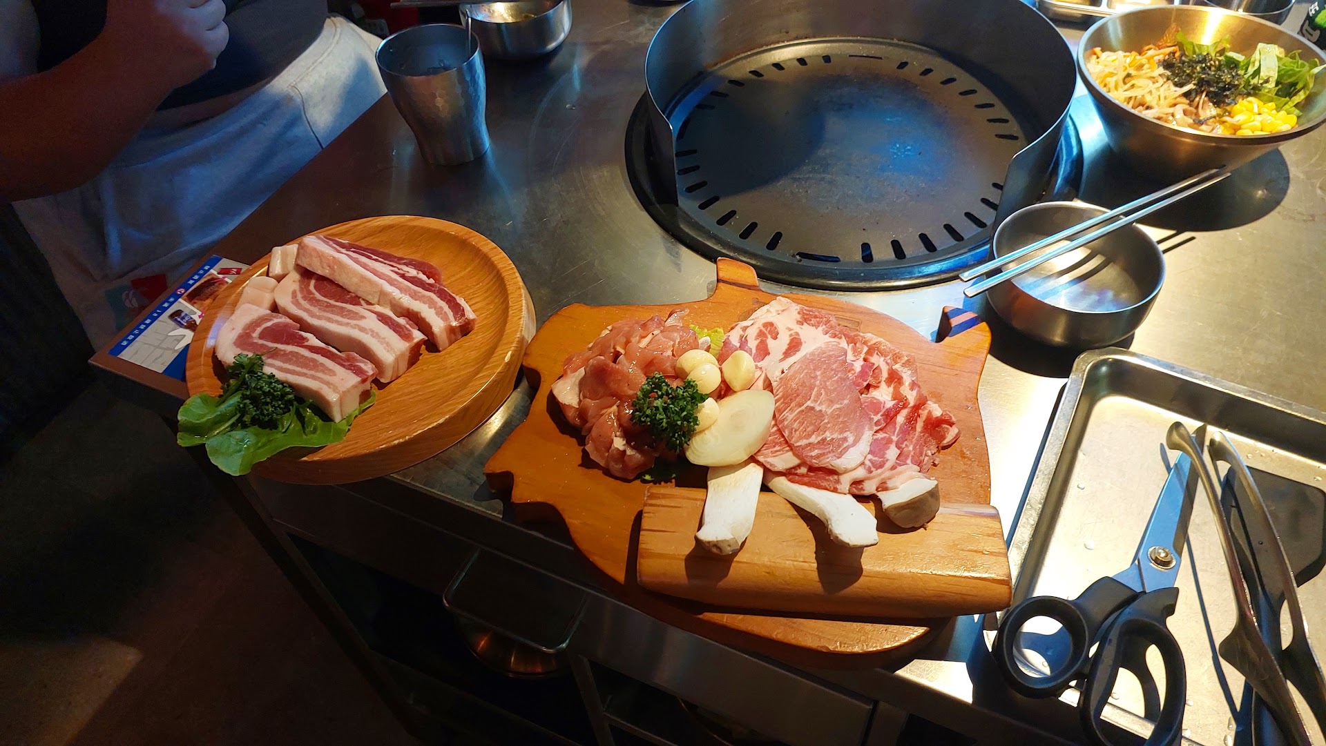 Read moreReally conveniently located on the heart of one of Taipei's shopping districts, we came here on a Sunday night when the shopping district was hopping with a whole bunch of street buskers, creating a wonderful atmosphere while we wandered thinking what to eat. On the second floor the maitre'd (captain) greeted us warmly and patiently talked us through the different menu options, advising on what was popular and how much was an appropriate order. The food came quickly, and looked wonderful, with the menu also including free flow salad and kimchi. My favourite was the cheddar wrapped pork, and one thing that i loved was that the wait staff come and cook your food at the table for you. Toping it all off was the lovely gappe Soju that we had. A great meal, well worth the $2300 NTD we spent for four people. An unreserved...