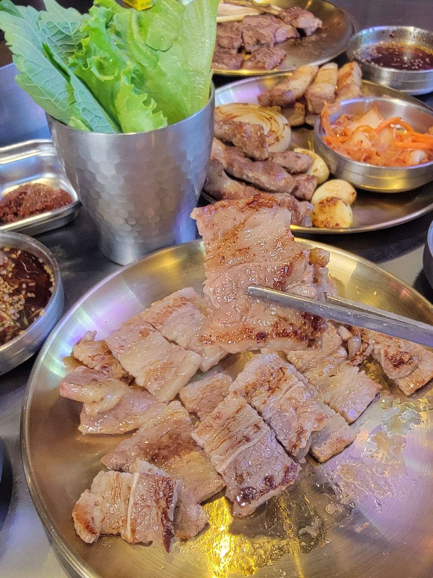 After being seated, the pork belly and a few slices of beef came out first. The portions seemed small for the price, so we asked if that was it. The server simply handed us the menu again—without saying a word. I asked once more if that was the full set, and only then did she confirm that there was more to come, just spaced out. Which is fine. But her demeanor? Cold. No smile, no effort to make us feel comfortable. Just… disinterested.